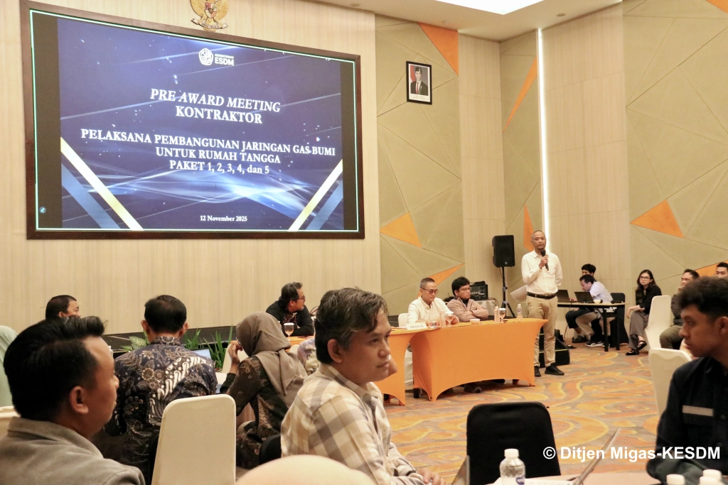 Bandung, Komitmen Pemerintah untuk memperluas penyediaan akses energi bersih, aman dan terjangkau bagi masyarakat melalui pembangunan Proyek Strategis Nasional (PSN) Jaringan Gas Bumi (Jargas) untuk Rumah Tangga terus dilakukan. Sebagai titik awal komitmen Pemerintah memastikan proyek Jargas dibangun tepat mutu, waktu, biaya serta sesuai dengan kaidah HSSE (Health, Safety, Security, Environment), Direktorat Jenderal Minyak dan Gas Bumi (Ditjen Migas) menyelenggarakan Pre Award Meeting (PAM) Pembangunan Jargas untuk Rumah Tangga APBN Tahun Anggaran 2025 – 2026 bersama para PPK dan penyedia pemenang lelang proyek pekerjaan Jargas di Harris Hotel Bandung, Rabu (12/11).