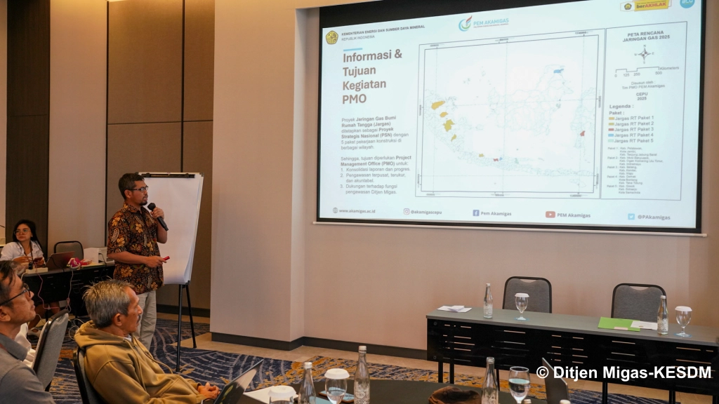 Bekasi, Pemerintah terus mendorong program diversifikasi energi dan penyediaan akses energi bersih yang terjangkau bagi masyarakat, salah satunya melalui pembangunan Proyek Strategis Nasional (PSN) Jaringan Gas Bumi (Jargas) untuk Rumah Tangga. Dalam rangka persiapan pelaksanaan dan identifikasi potensi tantangan proyek pembangunan Jargas untuk Rumah Tangga, Direktorat Jenderal Minyak dan Gas Bumi (Ditjen Migas) menyelenggarakan Kick of Meeting Project Management Office (PMO) Pembangunan Infrastruktur Jargas untuk Rumah Tangga TA 2025 bersama para Tim PMO PEM Akamigas dan Pejabat Pembuat Komitmen (PPK) Pembangunan Jargas untuk Rumah Tangga di Fourpoints Hotel Bekasi, Kamis (6/11).