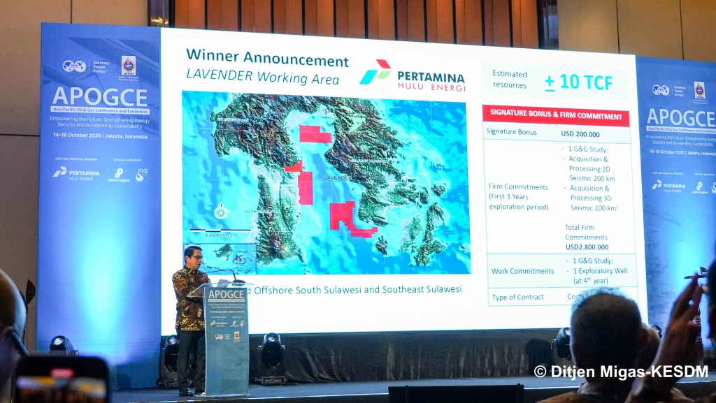 Jakarta, Pemerintah melalui Kementerian Energi dan Sumber Daya Mineral (ESDM) c.q. Direktorat Jenderal Minyak dan Gas Bumi (Migas) kembali mengumumkan Pemenang Lelang Wilayah Kerja (WK) Migas Tahap I Tahun 2025 untuk Wilayah Kerja Lavender. Pengumuman pemenang Lelang Penawaran Langsung Wilayah Kerja Lavender diumumkan oleh Direktur Jenderal Migas Laode Sulaeman pada SPE/IATMI Asia Pacific Oil & Gas Conference and Exhibition (APOGCE) 2025 bertema “Empowering The Future : Strengthening Energi Security and Accelerating Sustainability”, Selasa (14/10).