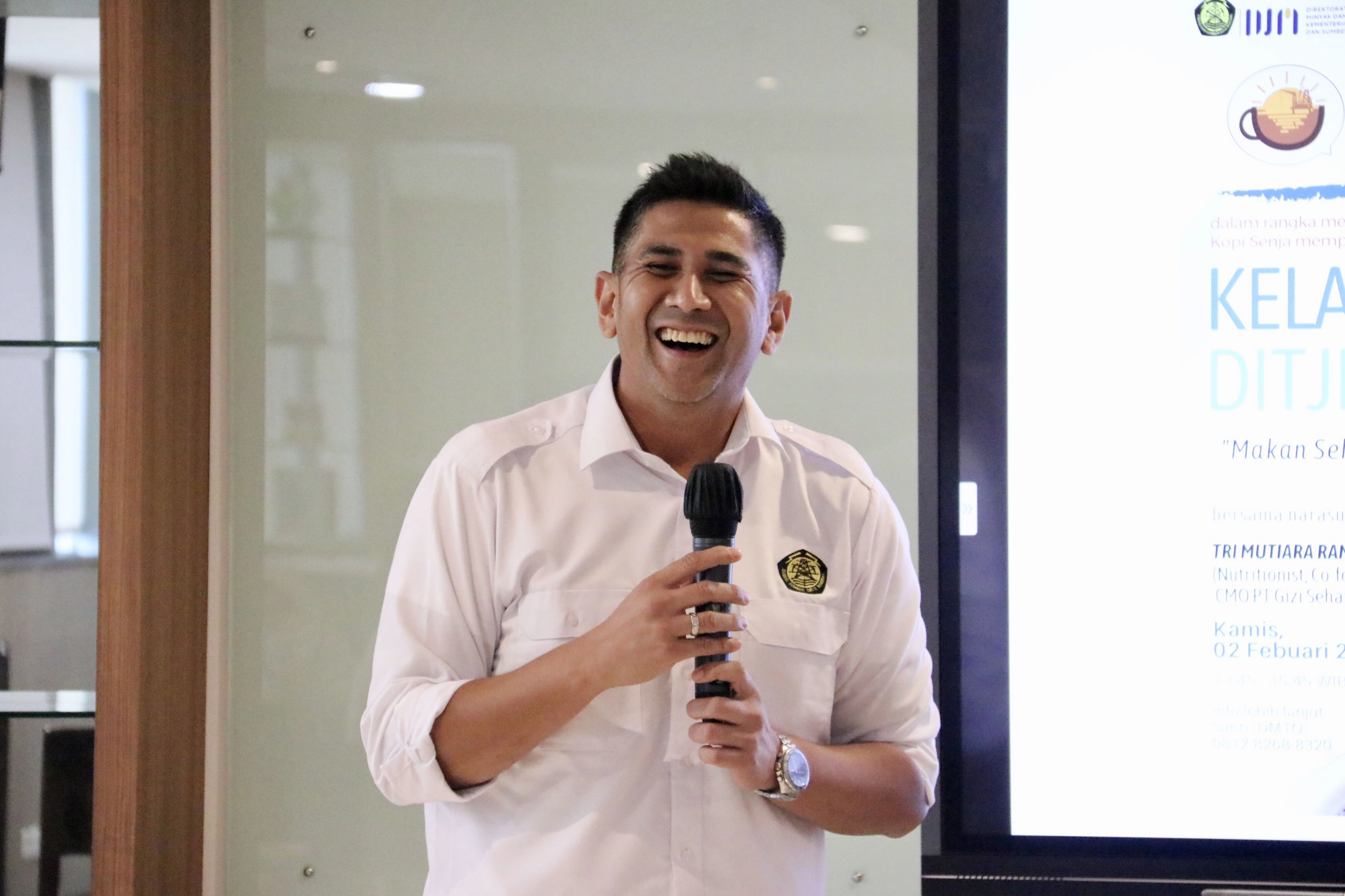 Lalu bagaimana cara mengatur pola makan yang sehat di tempat kerja? Dalam rangka memperingati Bulan K3 Nasional, Kopi Senja Episode 7 hadir kembali, Kamis (02/02) siang, bertema “Kelas Gizi Ditjen Migas : Makan Sehat Untuk Hidup Hebat” dengan menghadirkan narasumber Tri Mutiara Ramdani, S.Gz, M.Sc, selaku Co-founder @dietela.id.